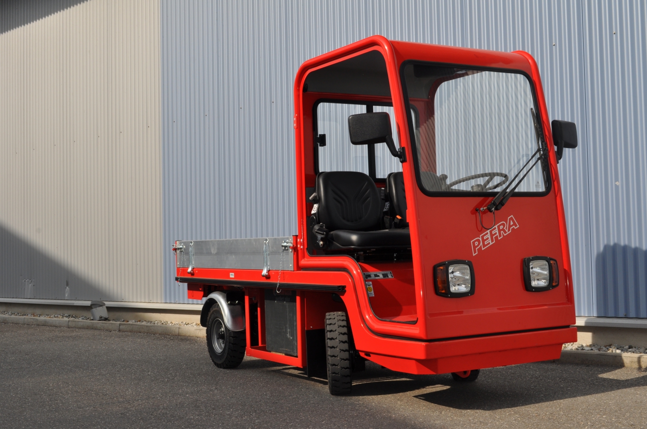 Auf ebener, befestigter Fahrbahn und nach jeweiliger Batteriebestückung bis zu 40 km pro Batterieladung und 50% Last.