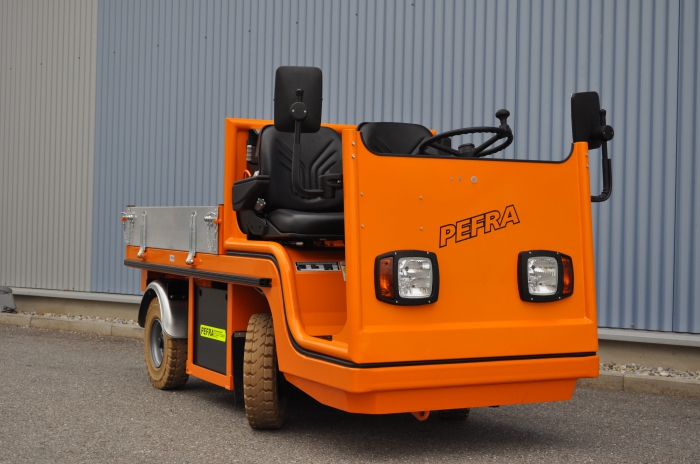 Auf ebener, befestigter Fahrbahn und nach jeweiliger Batteriebestückung bis zu 40 km pro Batterieladung und 50% Last.