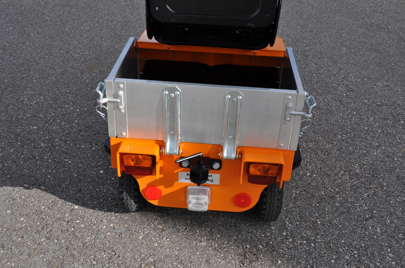 Die Nutzlastangabe gilt für den Transport in der Ebene. Für Steigungen und Gefälle reduzieren sich jene. Die zulässigen Werte sind dem aktuellen Typenblatt (4-seitig) zu entnehmen. Bei Anhängebetrieb mittels Elektrofahrzeugen wird grundsätzlich eine 4-Rad-Bremse empfohlen. Maßgebliche Vorschriften sind die DIN 15172 und ff. Bei Anhängerbetrieb ist vom Nutzer entsprechend 5.2.1 vor Inbetriebnahme eine Probefahrt am Einsatzort durchzuführen und zu protokollieren.