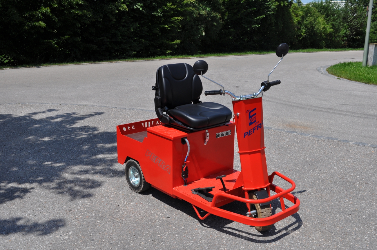 Wartungsfreier Drehstrom-Motor 24 Volt, 1,5 kW; direkt an das Differentialgetriebe angeflanscht und auf die Hinterachse wirkend. Getriebeübersetzung i=1:16,3 oder i=1:22