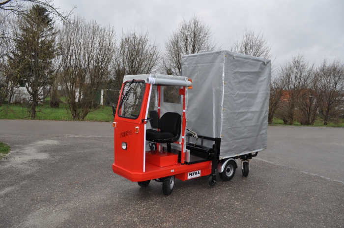 geschlossen mit einer Plane sowie an