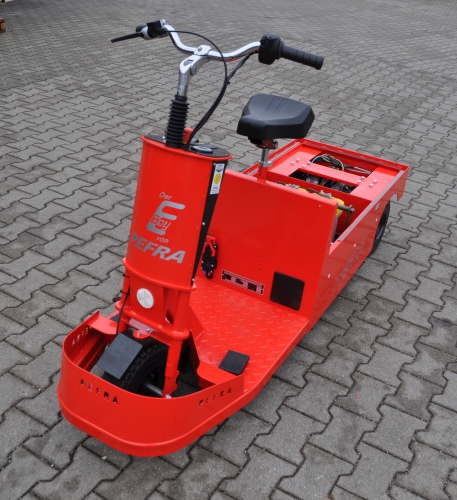Der Elektrotransporter 506 Economy ist ein flexibles Transportfahrzeug der Lasten bis 600kg aufnehmen kann. Alle Bedienelemente sind griffgünstig und übersichtlich für den Fahrer angeordnet. Die Pedale sind ähnlich dem Automobil konfiguriert und auch für große Schuhgrößen geeignet.