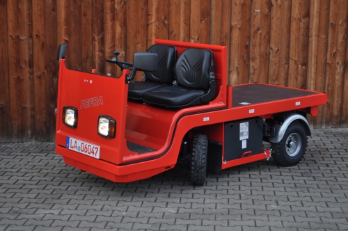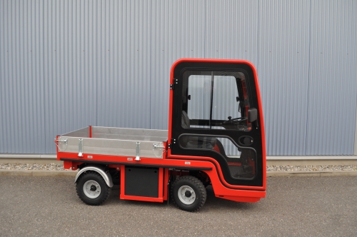 Dreifach gedämpft und gefedert (gefedertes Fahrwerk, entkoppelte und gedämpfte Kabine, und gefederter Fahrersitz), verhelfen dem 610er zu einem angenehmen Arbeitsplatz, dessen variabel gestaltbare Ladefläche durch zusätzliche Alu-Bordwände* oder andere Aufbauten* an die Wünsche des Anwenders angepasst werden kann. Mit seitlichem schnellen Batteriewechsel kann das Fahrzeug effizient im Mehrschicht-Betrieb eingesetzt werden.